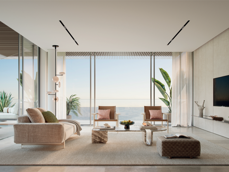 Gli interni estremamente spaziosi si aprono su vaste terrazze impreziosite da una vegetazione lussureggiante e piscine private uniche. Ammira panorami mozzafiato verso Burj Al Arab, Burj Khalifa, Palm Jumeirah e Ain Dubai mentre ti rilassi e respiri l'aria fresca del mare. Ogni appartamento esclusivo gode di viste panoramiche a 180 o 360 gradi.